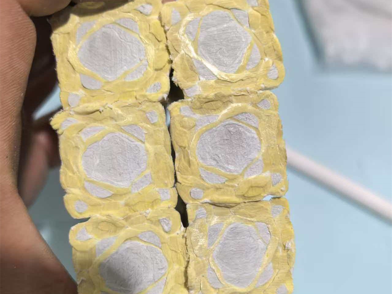 压块:经高压、高温模压固化成型的块状制品。